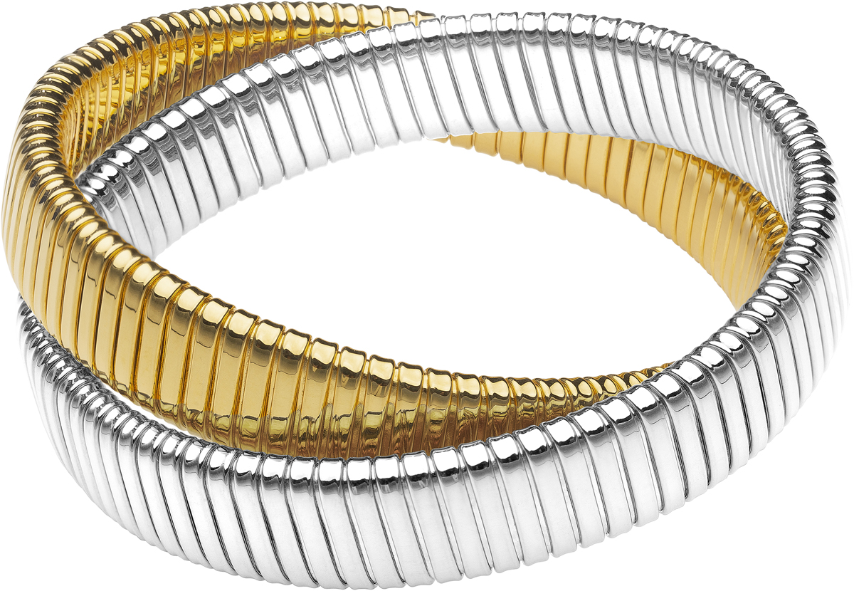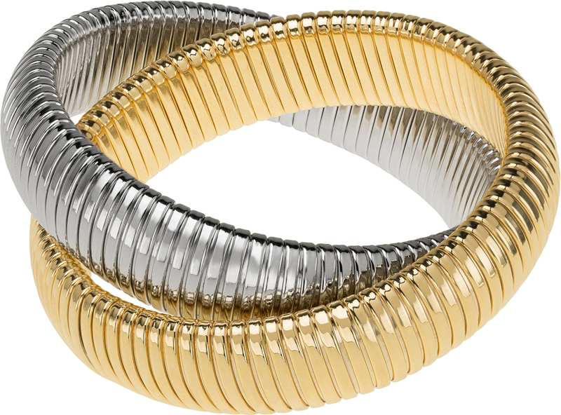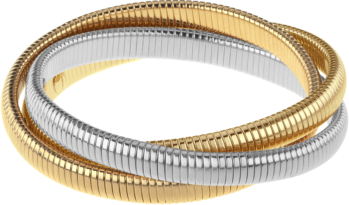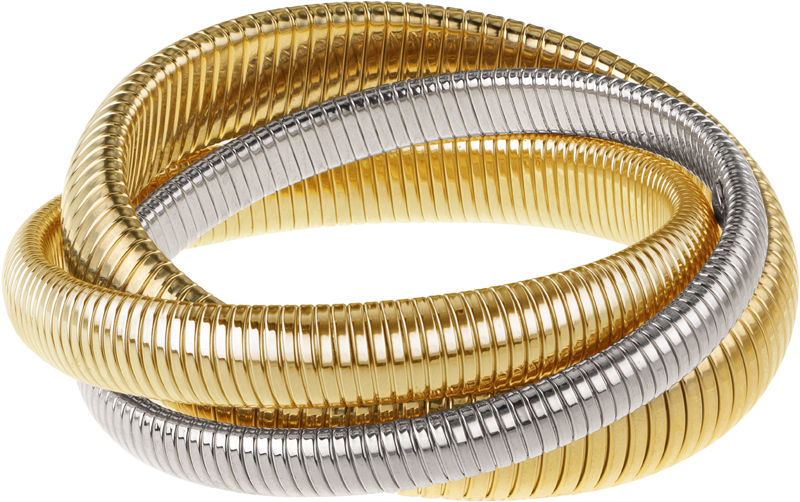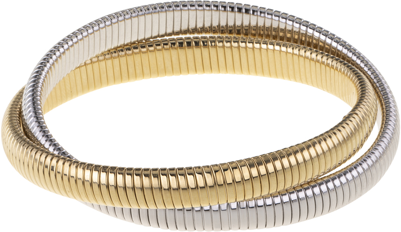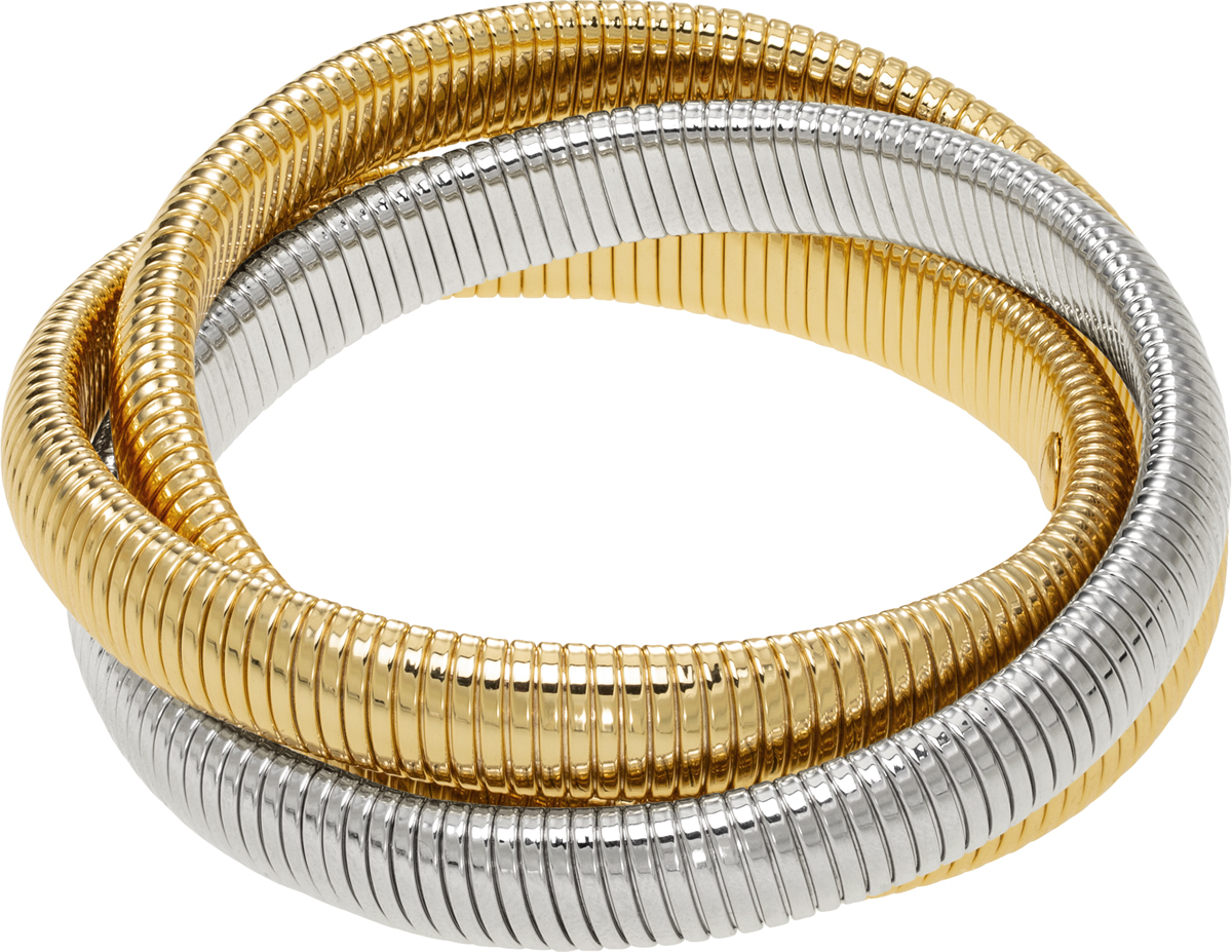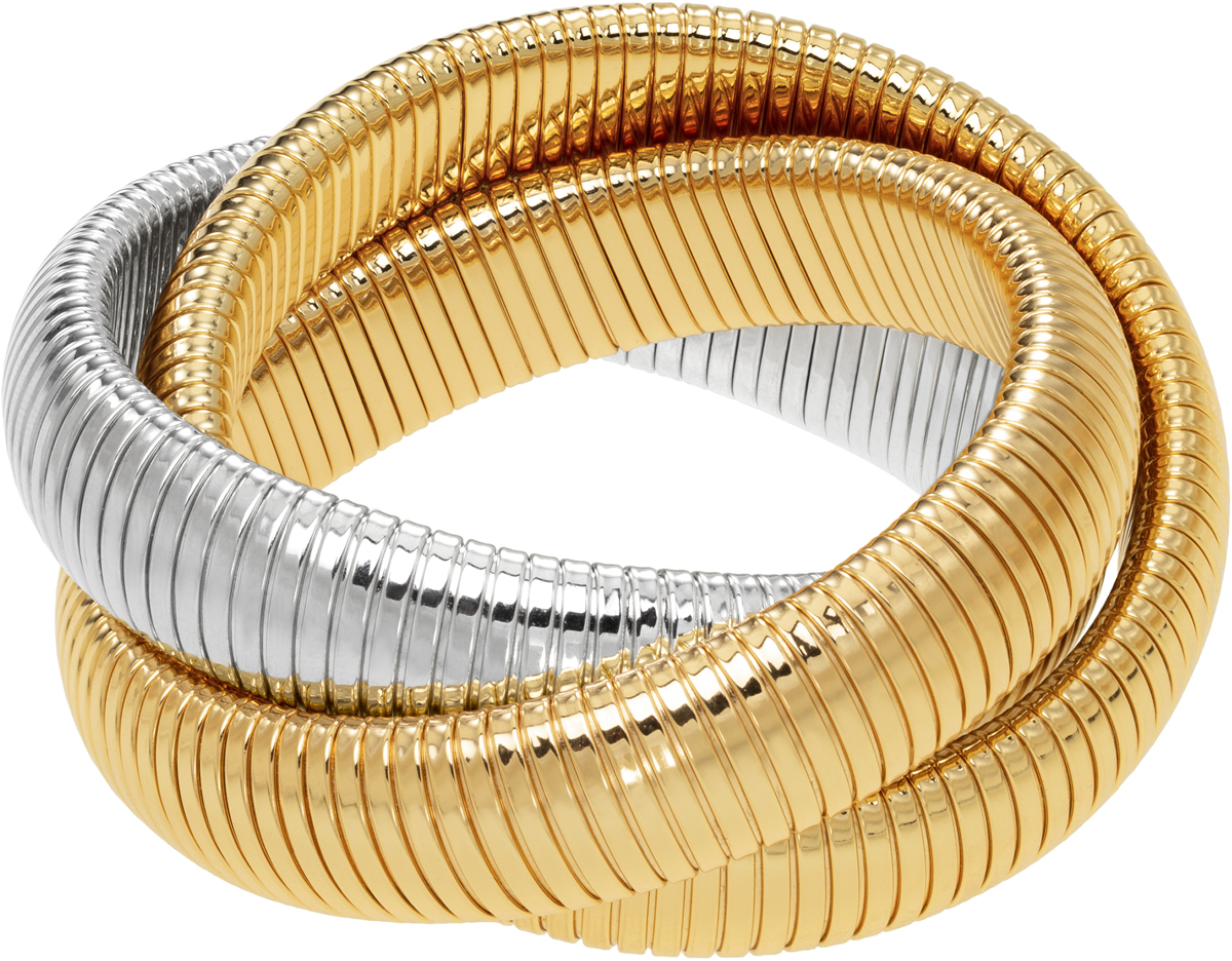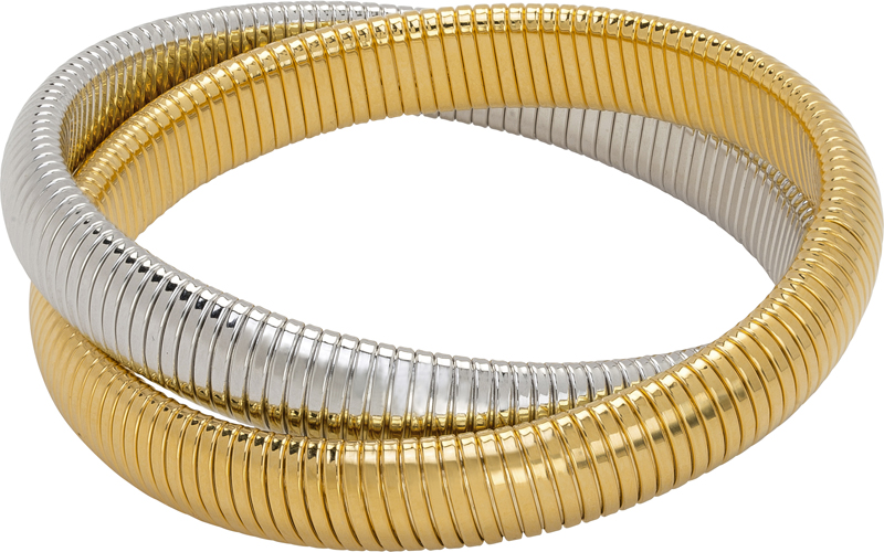 high polished yellow gold and rhodium double cobra bracelet