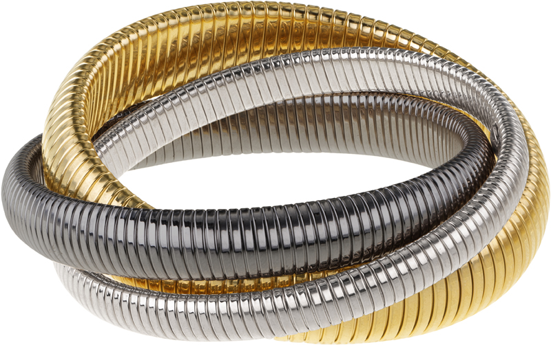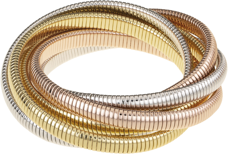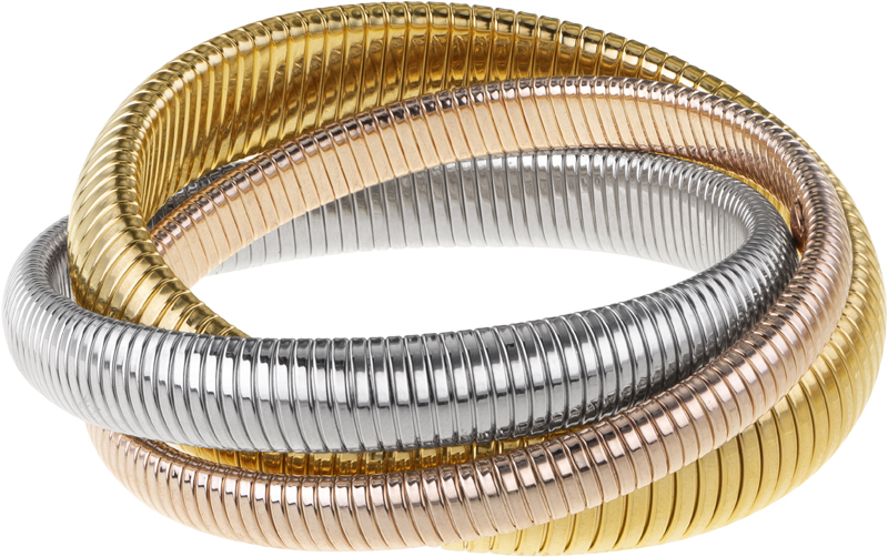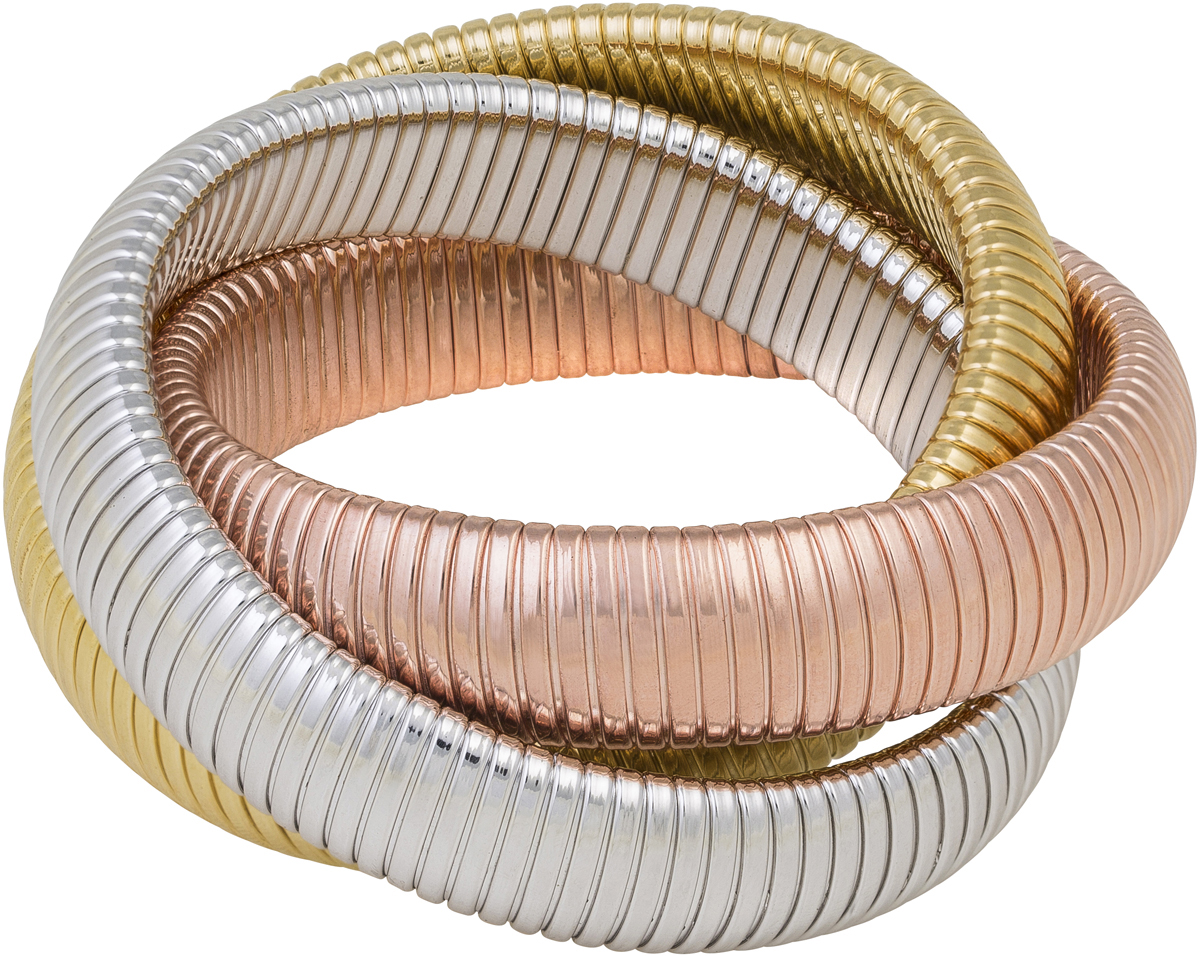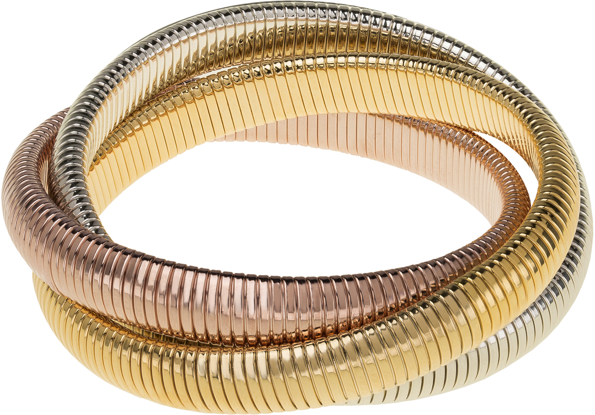 Gold, Rhodium and Rose Gold Triple Cobra Bracelet