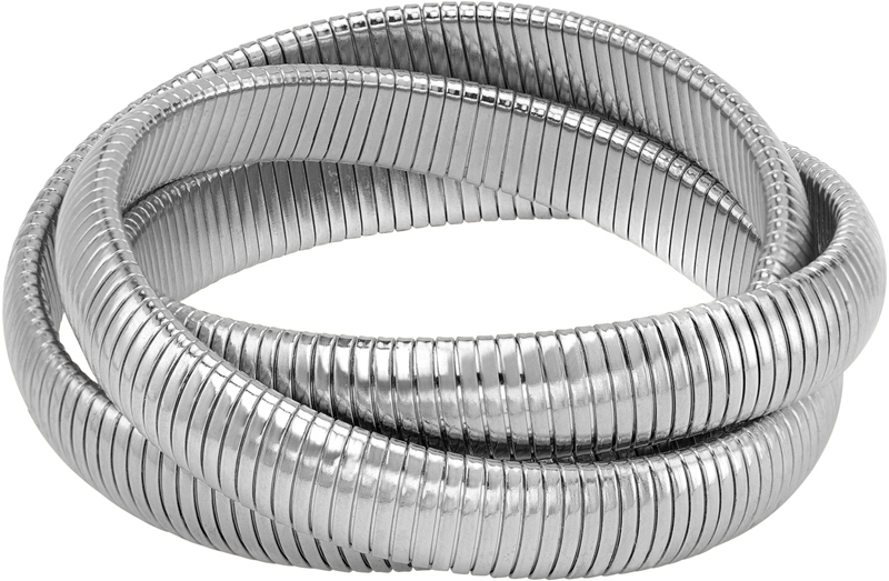 High Polished Rhodium Double Flat Band Cobra Bracelet