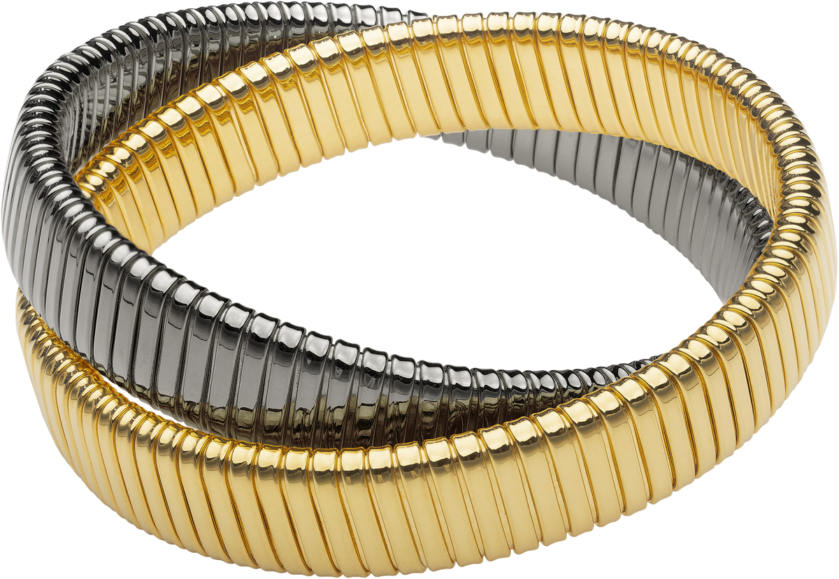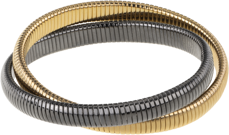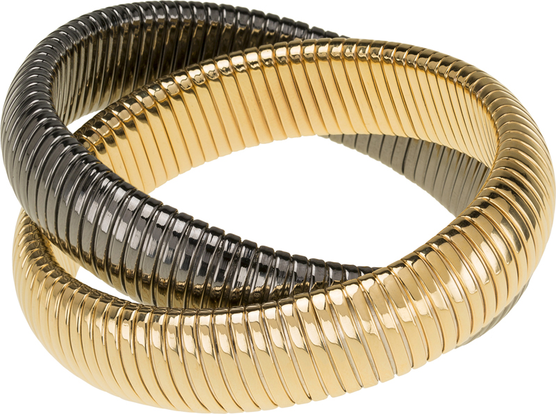 high polished yellow gold and gunmetal double cobra bracelet