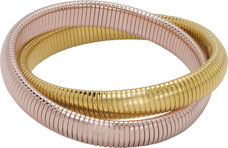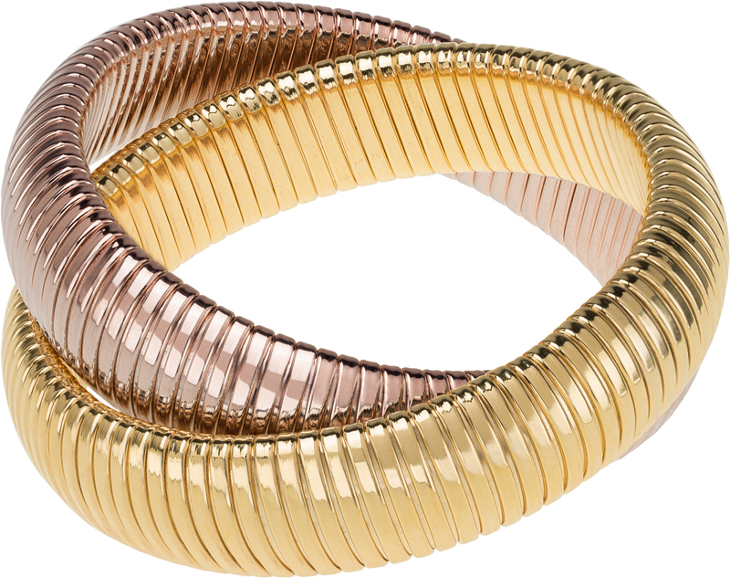 high polished yellow gold and rose gold double cobra bracelet