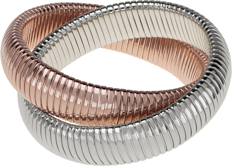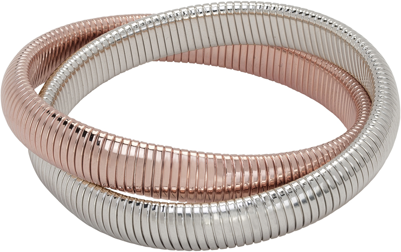 high polished rose gold and rhodium double cobra bracelet