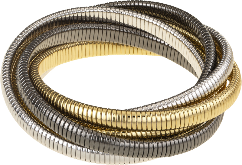 gold, rhodium and gunmetal 6 row cobra bracelet