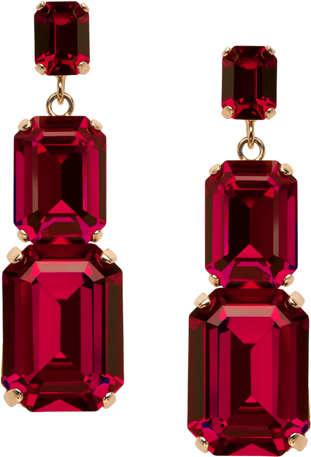 High Polished Gold and Ruby Crystal Drop Earring