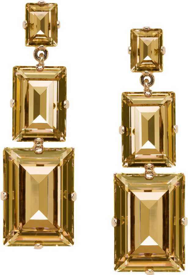 High polished yellow gold and golden shadow crystal drop earring