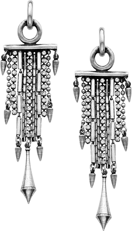 high polished rhodium brass plated earring with crystals
