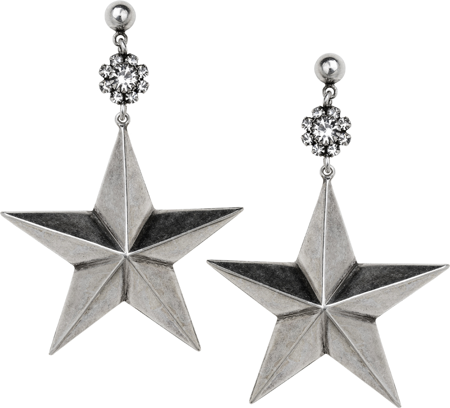 antique silver and swarovski crystal star earrings
