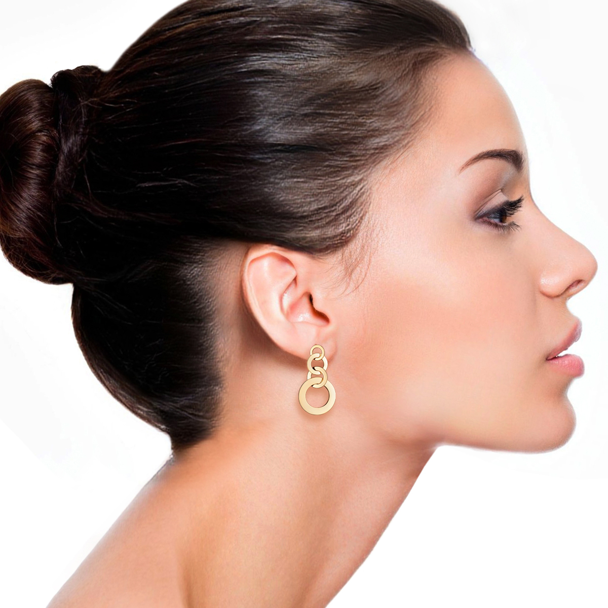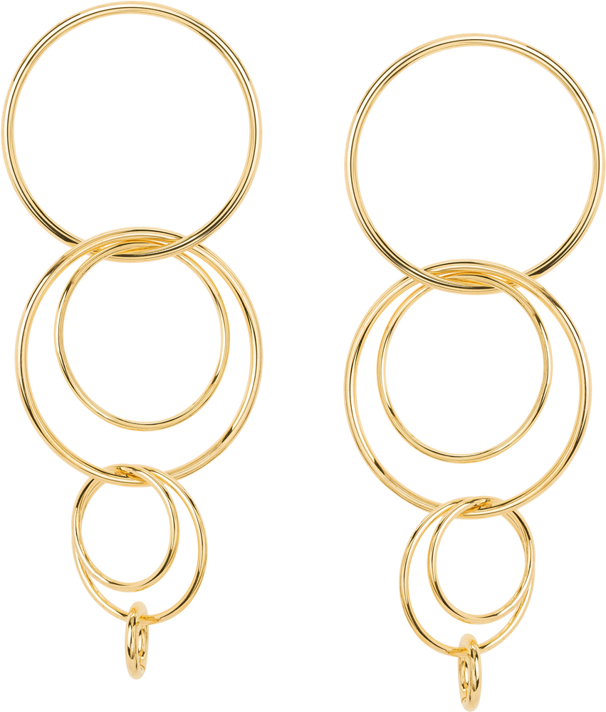 18k yellow high polished gold plated brass triple circular drop earrings