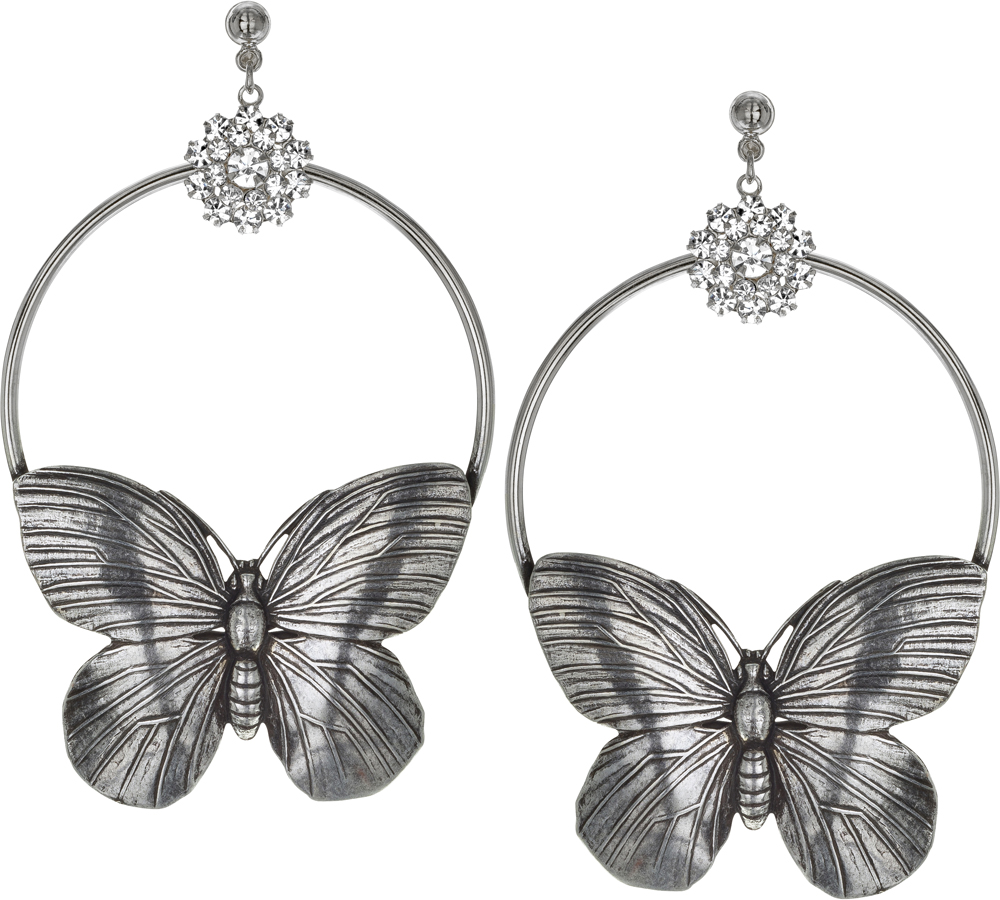 antique silver and crystal butterfly hoop earrings