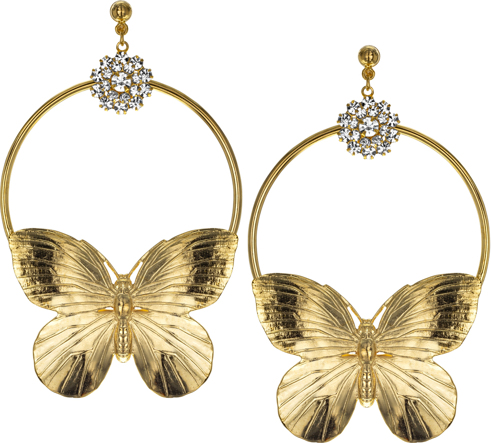 high polished gold and crystal butterfly hoop earrings