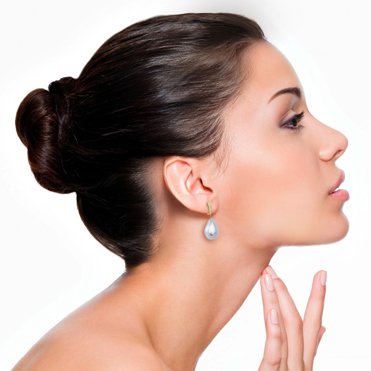 rhodium pearl stick earring