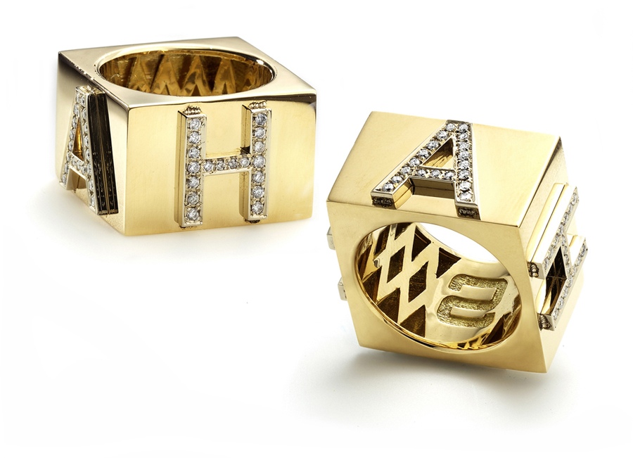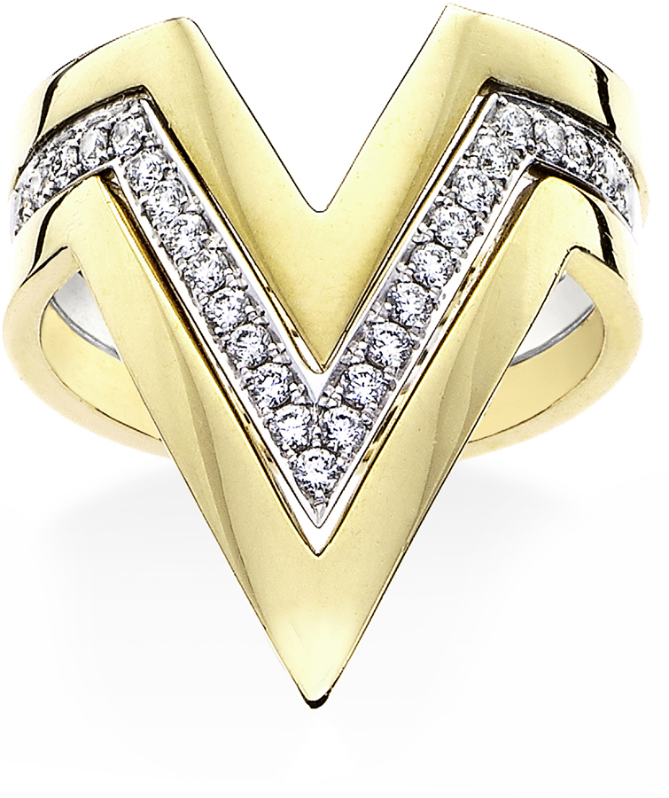 18k Yellow Gold Small 'V' Ring/18k White Gold and Diamond 'V" Ring/18k YG Large 'V' Ring