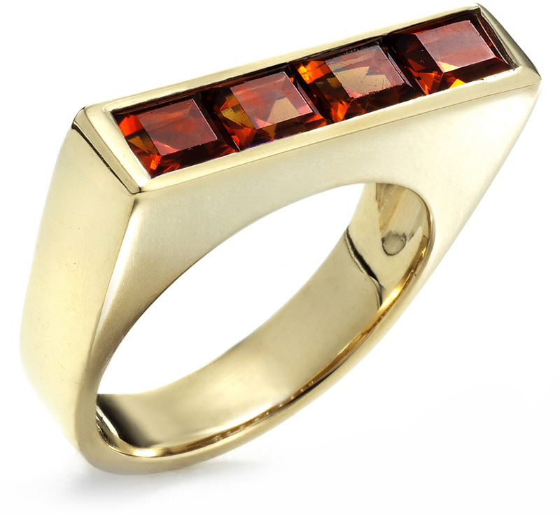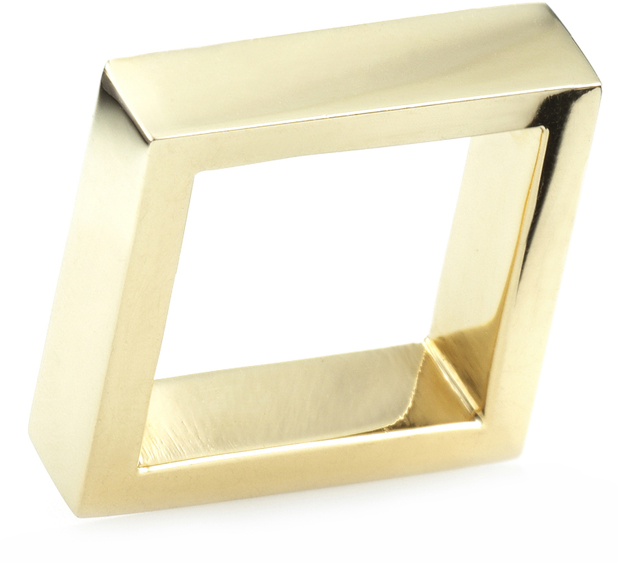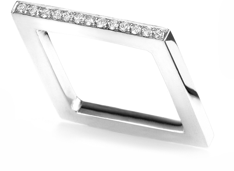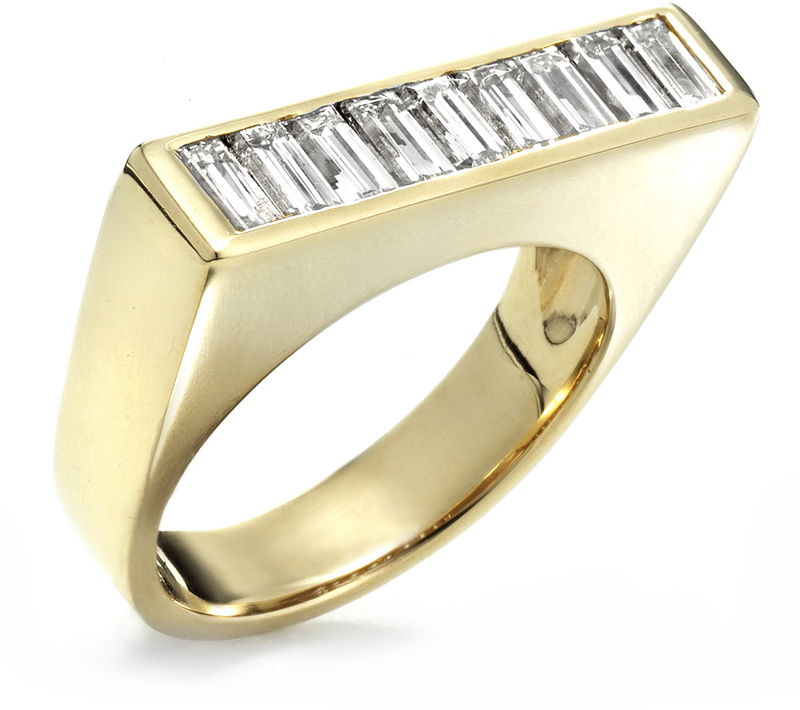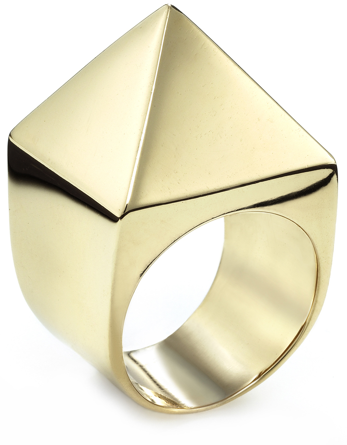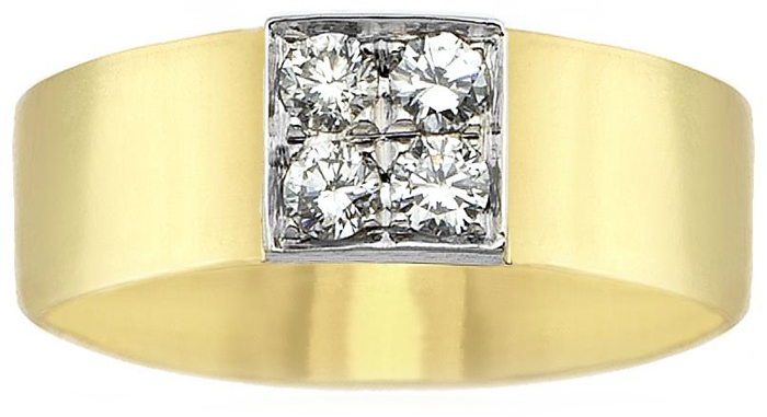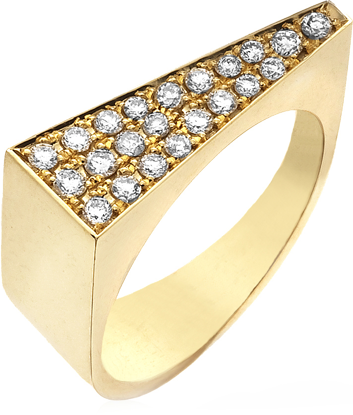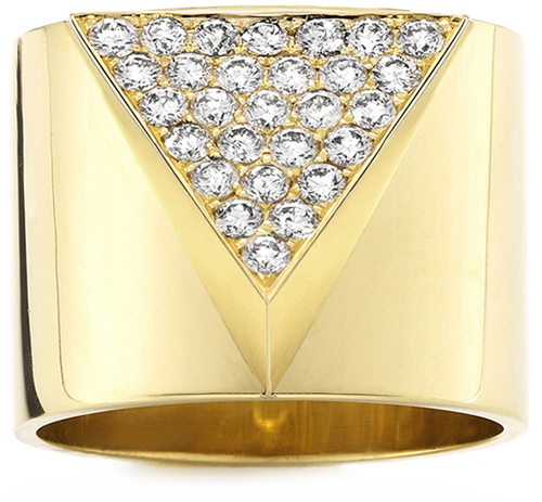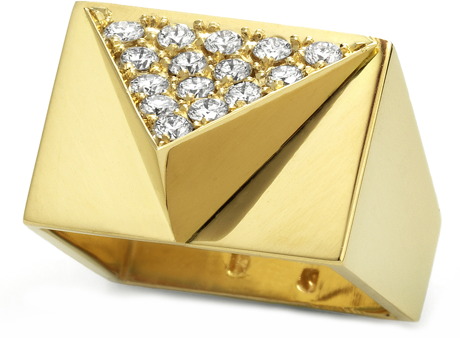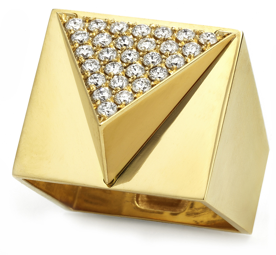 18k Yellow Gold Large Square Ring with Pave Diamond Triangle