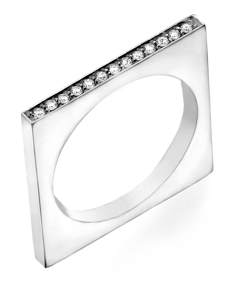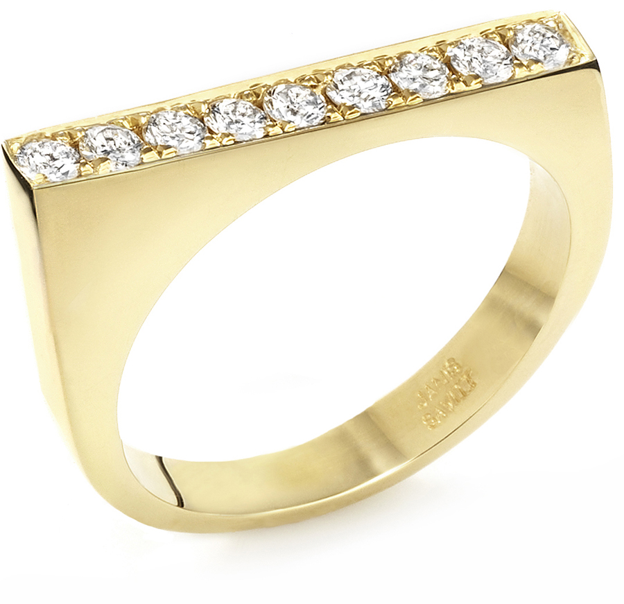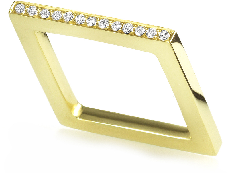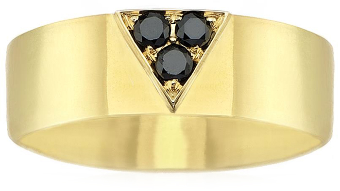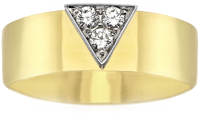 18k Yellow Gold Small Square Ring with Pave Diamond Triangle