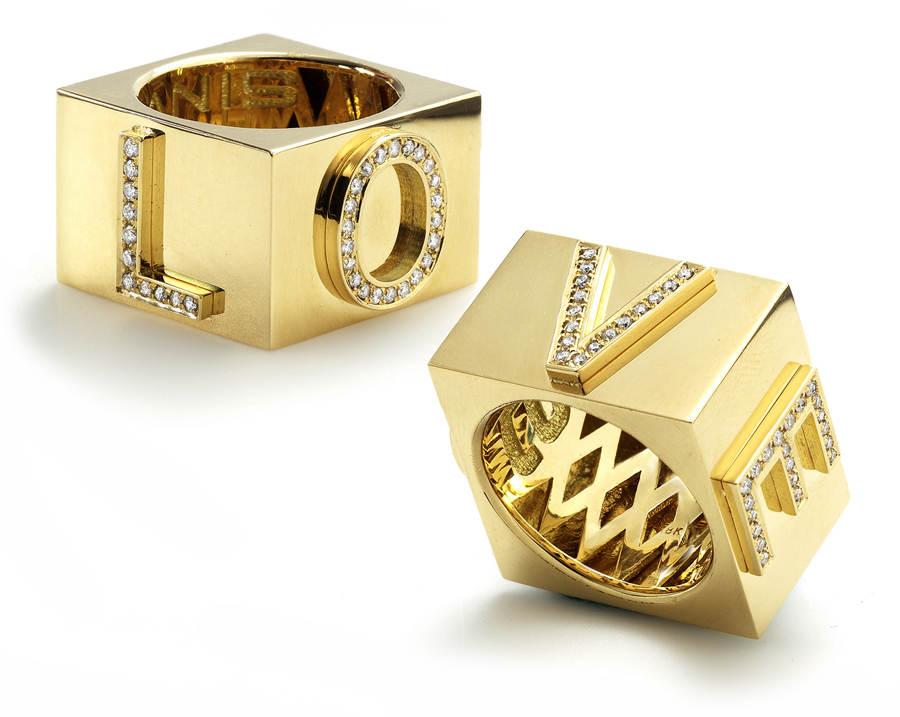 18k Yellow Gold and Diamond 'LOVE' Ring