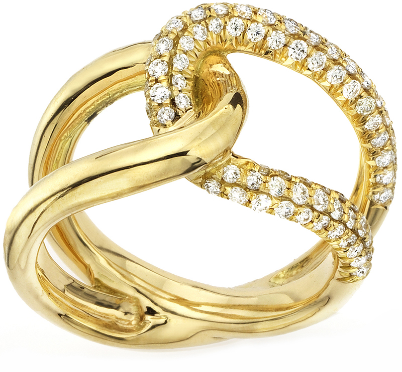 18k Yellow Gold Pave Diamond Heavy Hook Ring