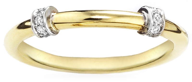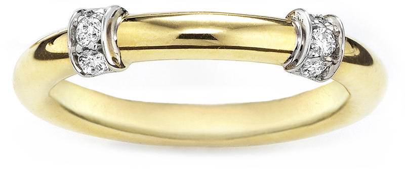 18k Yellow Gold Thin Ring with White Gold and Diamond Wraps
