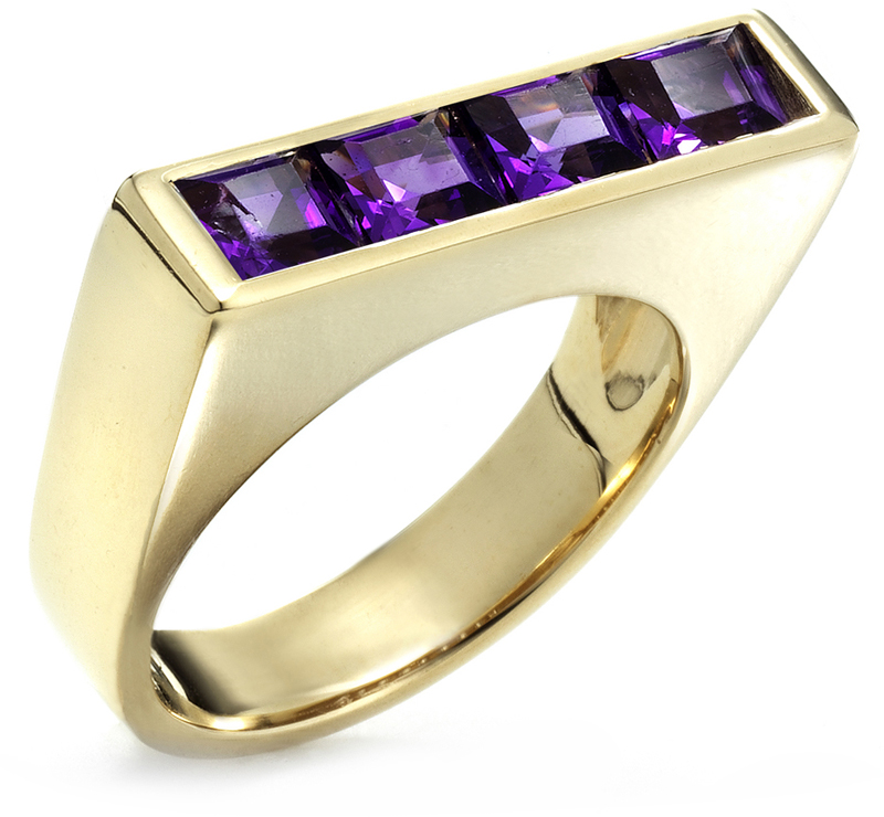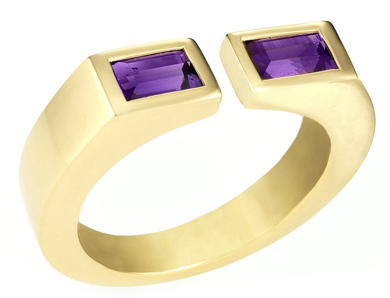 18k Yellow Gold, Amethyst and Sky Blue Topaz Ring