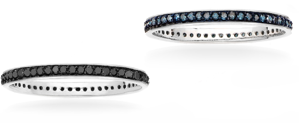 Set of 3 Rings: Consisting of one 18k Yellow Gold Band, Blue Diamond Band and White Diamond Ring