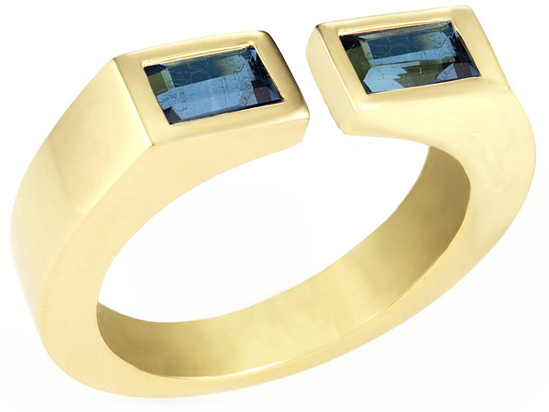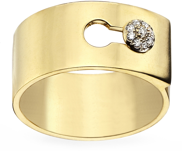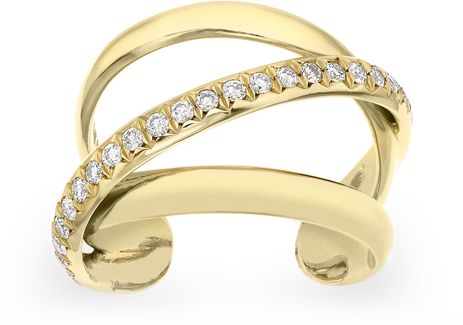 18k Yellow Gold and Diamond Narrow Hook Ring