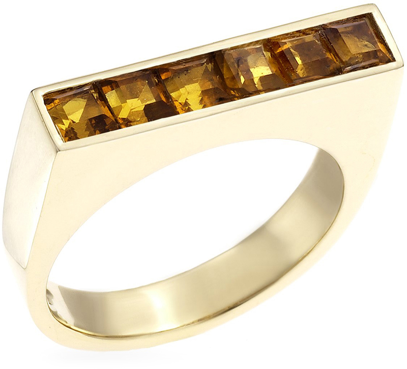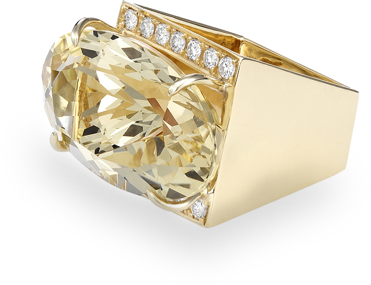 18k Yellow Gold, Lt. Yellow Quartz and Diamond Ring