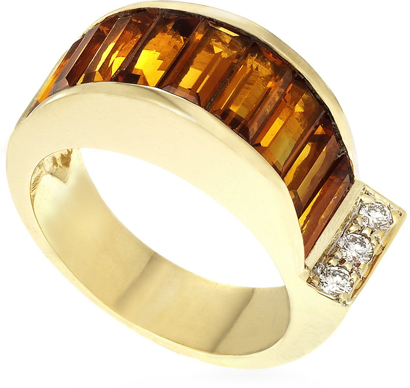 14k Yellow Gold, Diamond and Citrine Topaz Ring