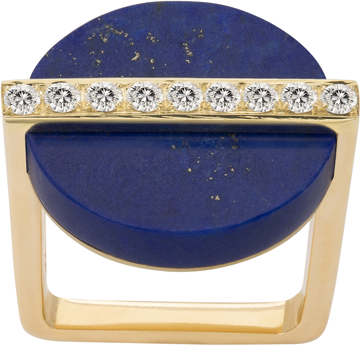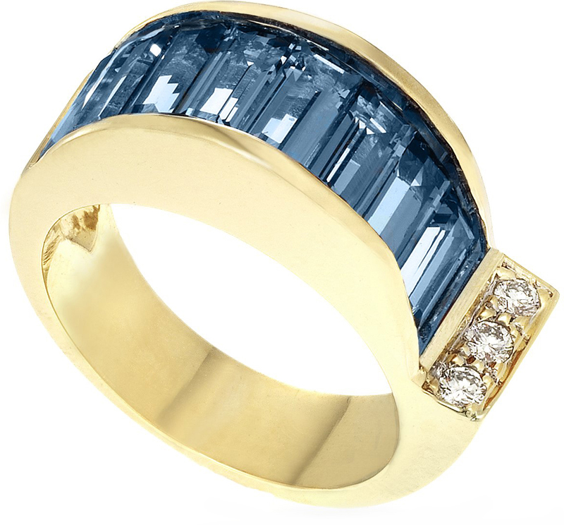 18k Yellow Gold, Diamond and Blue Topaz Ring