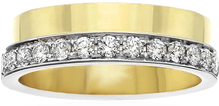 18k Yellow Gold Heavy Ring with White Gold and Diamond Wraps
