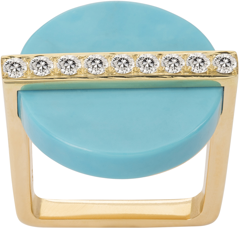 18k Yellow Gold, Diamond and Sleeping Beauty Turquoise Ring