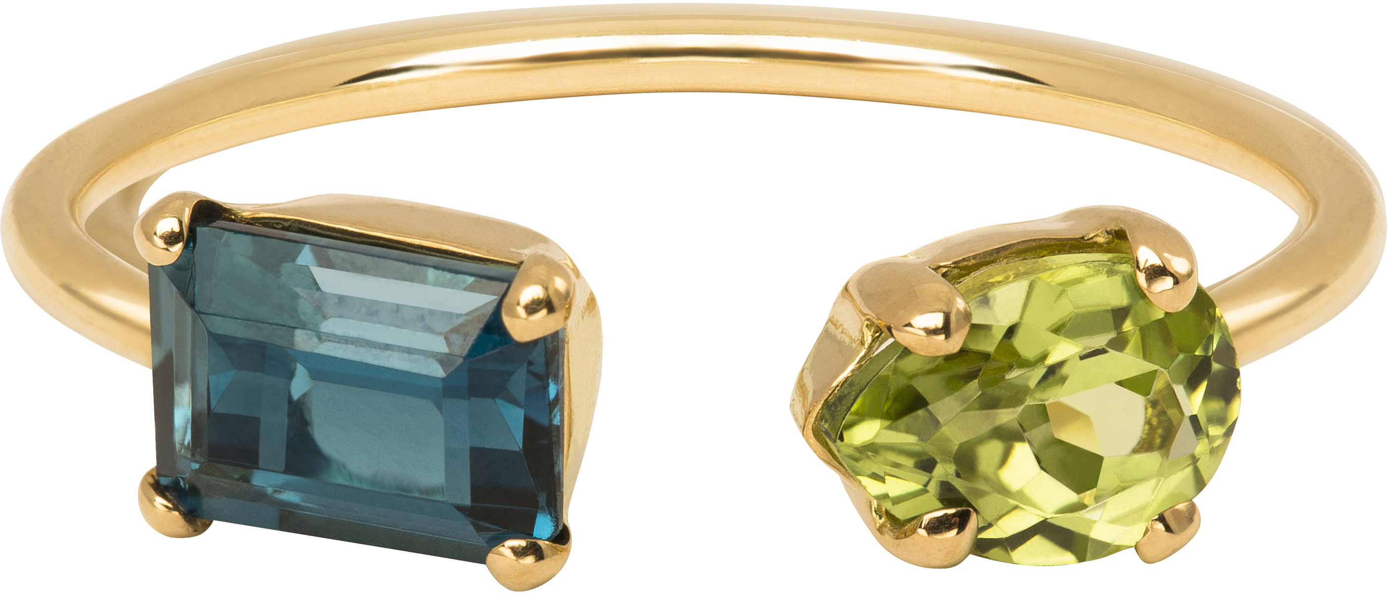 18k Yellow Gold, Peridot and London Blue Topaz Ring